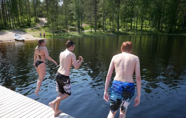 Kesällä alueen keskus on hiekkaranta, jossa on uusi hyppytornilla varustettu laituri ja ponttonilaituri. Ranta on lapsiystävällinen ja soveltuu loistavasti lekotteluun, auringonpalvontaan ja vaikka vesijuoksuun. Rannan vieressä on käytössä kotalaavu tulipaikkoineen. Rannalla on myös pukukopit ja puucee. Alueella on tasokas 18 väyläinen frisbeegolfrata, luontokuntosali, kiipeilykivi ja kuntorata. Uimarannalle johtavat portaat sopivat myös liikuntakäyttöön.